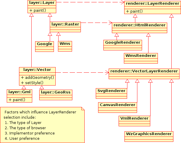 - Cameron Shorter / Paul Spensor: We should have a GraphicsRenderer class which has children: SvgGraphicsRenderer, VmlGraphicsRenderer, etc. We would then have a GraphicsFactory which creates the different GraphicsRenderer classes.