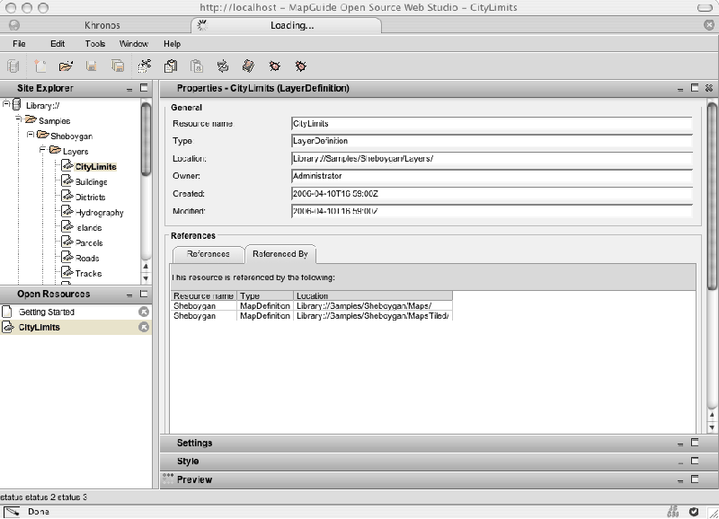 MapGuide OS Web Studio screen shot - resource properties.