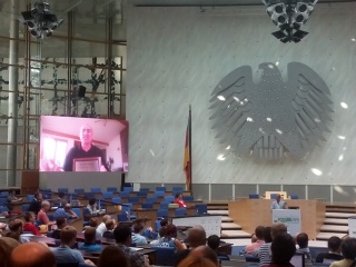 Jeff McKenna is awarded the 2016 Sol Katz Award, at the closing plenary of FOSS4G, in Bonn, Germany on 2016-08-26.