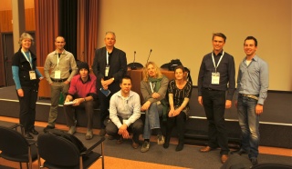Particpants of the Birds-of-a-Feather (BoF) where we officially accellerated the establishment of OSGeo.nl This may become a historical picture. Picture taken by Arnulf Christl.