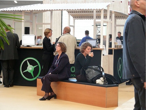 With an exhibition area of 30 by 16 meters (95 by 50 feet) and two rest areas of 10 by 5 meter (30 by 15 feet) the OSGeo Open Source Park was one of the largest booths at the fair. The focus of the Intergeo trade show is clearly business and end customer oriented. The on and off hacker could be seen lurking around to get hooked up to the internet but mostly it was suits and users. Several thousand people (of the 15,000 total) that came ot the Intergeo also came to the OSGeo booth to pick up flyers, listen to presentations. Those who wanted to get more detailed information talked to the booth staff of roundabout 30 people from all areas of IT and FOSS GIS business. In short - it was a great success.