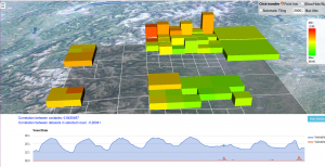 The idea behind this project is to create an application using Nasa Web World Wind to show metadata about environmental variables in more than three dimensions. The model I'd like to implement to present 3D data is a Voxel model. Each voxel has three dimensions that will be possible to customize with the interested metadata, but also more information can be shown thanks to Web World Wind capabilities. Coloring each Voxel might present another metadata and additionally creating an animation in time gives the opportunity to introduce a further variable. Users will be able to interact with the visualization, customizing the metadata on the Voxel and filtering data according to specific settings. As input data, I am considering telecommunication data from "Telecom Italia Big Data Challenge 2015". My idea is to create first the visualization environment and further import the data in a database to allow users to query the database for particular data. Moreover, depending on the time also would be interesting to allow users to import their data set in a specific format to share the view on a specific globe with other people.
